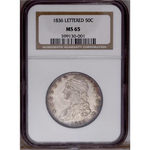 1836 50C Lettered Edge MS65 NGC. O-106, R.1. The rever 1836[50C] Lettered Edge MS65 NGC.