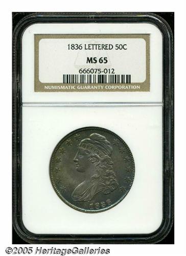 1836 50C Lettered Edge MS65 NGC. O-118, R.3. Apri