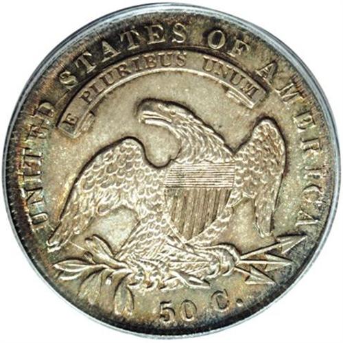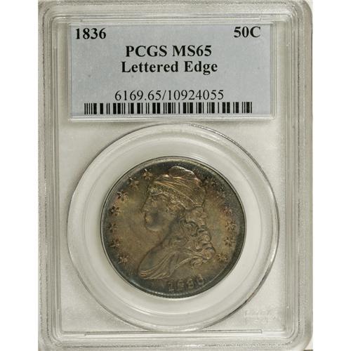 <B>1836 50C Lettered Edge MS65 PCGS.</B></I> O-104a, R.3. Obverse stars 7,8, 11 and 13 show recutting. On the reverse, lines 2 and 3 of stripe 3 are solid to crossbar 2. A die crack extends through the olive leaves and through UNITED, across the top of the scroll and to the upper edge of the eagle's right (facing) wing. Well struck and richly toned with bold luster and few surface disturbances of any kind.<BR><BR><b>Shipping:</b> Coins & Currency (<a target="_blank" href="http://www.heritageauctions.com/common/shipping.php">view shipping information</a>)
