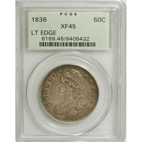 <B>1836 50C Lettered Edge XF45 PCGS.</B></I> PCGS Population (66/555). NGC Census: (60/679). Mintage: 6,545,000. Numismedia Wsl. Price: $124. (#6169)<BR><BR><b>Shipping:</b> Coins & Currency (<a target="_blank" href="http://www.heritageauctions.com/common/shipping.php">view shipping information</a>)