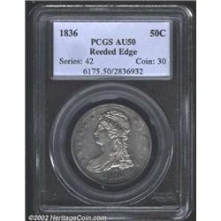 1836 50C Reeded Edge AU50 PCGS. This is a boldly detailed survivor with only the lightest wear over.
