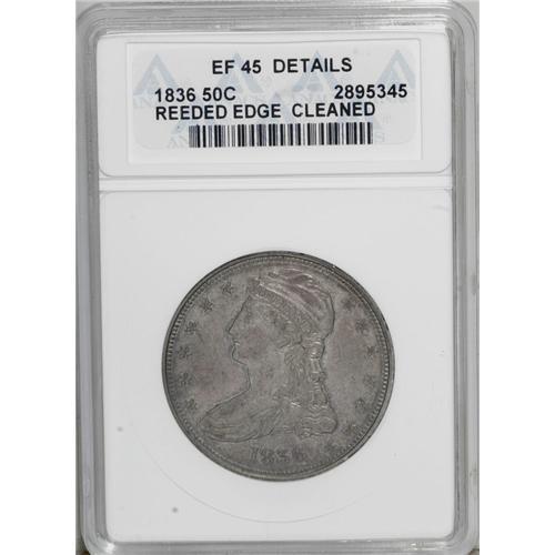 1836 50C Reeded Edge--Cleaned--ANACS. XF45 Details. So