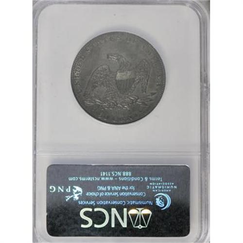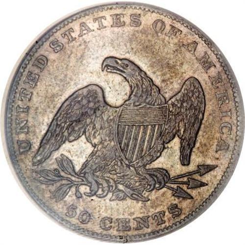 <B>1836 50C Reeded Edge--Improperly Cleaned--NCS. AU Details.</B></I> The 50 CENTS type was only struck in 1836 and 1837, and the first-year mintage was limited to 1,200 pieces. This example was only briefly in circulation, since ample luster remains. Deeply toned in apple-green and rose-gold shades that effectively conceal scattered minute abrasions.<BR><I>From The Yoder Family Collection, Part One.</B></I><BR><BR><B>Coin Engraver:</B> Christian Gobrecht<BR><BR><b>Shipping:</b> Coins & Currency (<a target="_blank" href="http://www.heritageauctions.com/common/shipping.php">view shipping information</a>)