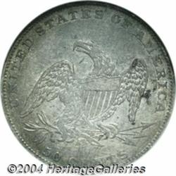 <table><tr><td><table><tr><td>1836 50C Reeded Edge MS61 NGC. The 1836 is a legendary rarity among U.S. Half Dollars. Christian Gobrecht modified John Reich's Capped Bust design in 1836 to prepare the Half Dollar for production on the mint's newly installed steam press. Apparently, this coinage press did not become operational until the end of 1836, as only 1,200 examples of the new Reeded Edge variety were produced that year. While we occasionally handle circulated survivors of this low mintage delivery, the present example is the first Mint State representative to appear in one of our Signature Sales in many months. Each side displays some deep charcoal-gray toning with hints of green-gold at the outermost border areas. The level of surface preservation is noteworthy, we can find very few abrasions of any kind. The otherwise bold strike wanes slightly toward the right obverse rim and over a few of the higher points of the design. Perfect for inclusion in an advanced collection that highlights toning as well as rarity. Population: 8 in 61, 13 finer (3/04). <BR><BR><B>Important notice:</B> Heritage usually auctions material at the rate of 200-250 lots per hour. On some occasions eBay Live bid software or the Internet may not be able to keep up with the pace of the auction. We recommend placing a realistic absentee bid now as insurance to avoid disappointment. Occasionally the auctioneer may eliminate or reject an eBay Live bid, and the auctioneer may also reopen a lot after the close of the eBay live bidding (usually because we missed an audience bid), and may reject your bid even if it shows you as the winning bidder. By bidding via eBay Live, you agree that Heritage may award the lot to another bidder at its sole discretion under the circumstances described above or any other reasonable circumstances. Since eBay bids are not shown to us until we open the lot on the floor, we treat those bids just like floor bids. In most cases the floor responds before the eBay bid is presented to us, due to Internet lag time, so for consistency we have made it a policy that floor bids are always considered first over tie eBay live bids. Also please note that all Heritage lots purchased through eBay Live carry a 20% Buyer's Premium. Please make sure you read the Terms and Conditions before you bid. <BR><BR><B>IMPORTANT ANNOUNCEMENT ABOUT RESERVES:</B> Heritage now divulges all reserves on its web site 7 days before every auction. If you want to know whether the reserve on this lot has been met, and if not, what the reserve amount is, please visit this lot page on the HeritageCoin.com web site, or email: bid@HeritageGalleries.com </span></font></td></tr></table></td></tr></table>