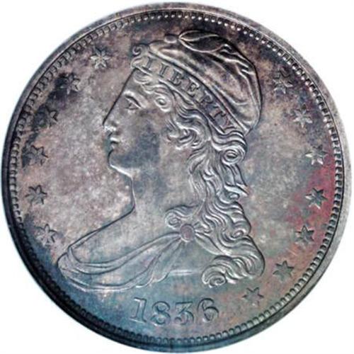 <B>1836 50C Reeded Edge MS61 NGC.</B></I> Under the directorship of Robert Maskell Patterson, the 1836 reeded edge half dollars were chosen for the first strikings on the Philadelphia Mint's new steam coinage press. Chief Engraver Christian Gobrecht modified the previous Reich/Kneass designs used for Bust half dollars, dropping the reverse motto and expanding the denomination from 50 C. to 50 CENTS. Many numismatists believe that 1,200 reeded edge half dollars were struck, beginning on November 8, 1836, and intended for general circulation. The editor of the useful www.uspatterns.com website, Saul Teichman, lists the coins as a regular issue, although many editions of the Judd pattern reference listed the pieces as patterns. Numismatic researcher R.W. Julian has maintained in a <I>Coin World</B></I> article (1982) that any 1836-dated non-pattern coins for general circulation would of necessity conform to the legal 208-grain standard of the day, and that perhaps the dies were held over to 1837 for regular-issue coinage: The Mint Act reducing the legal weight standard to 206.25 grains was passed on January 18, 1837. And a bit of web-surfing and book-browsing both confirm disagreements over their true weight. (A careful weighing of Uncirculated specimens would seem to be in order.) At any rate, it is clear that most survivors did circulate, a fact borne out by the NGC and PCGS population data, which indicate that only about 15% of the certified specimens are MS60 or finer. An Uncirculated specimen is a rarity and a challenge for the specialist. This example shows deep copper-gray toning on both sides, with glints of lighter silver-gray and magenta near the rims. The piece is well but not fully struck, with all the star centrils not fully brought up and softness on the eagle's left (facing) claw--as though Mint personnel of the era were still experimenting with the new press to obtain optimal results. There is, of course, no hint of rub on this pleasing, historic, and underrated coin. Census: 9 in 61, 20 finer (7/07).<BR><BR><B>Coin Engraver:</B> Christian Gobrecht<BR><BR><b>Shipping:</b> Coins & Currency (<a target="_blank" href="http://www.heritageauctions.com/common/shipping.php">view shipping information</a>\)