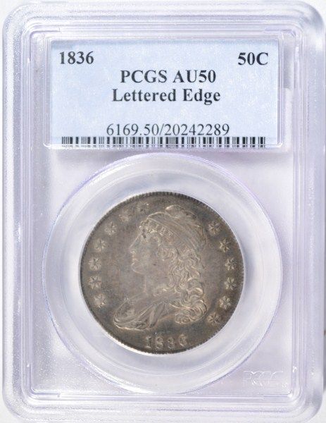 VERY NICE BUST HALF DOLLAR WITH LETTERED EDGE, ESTIMATE, $350.00 TO $375.00