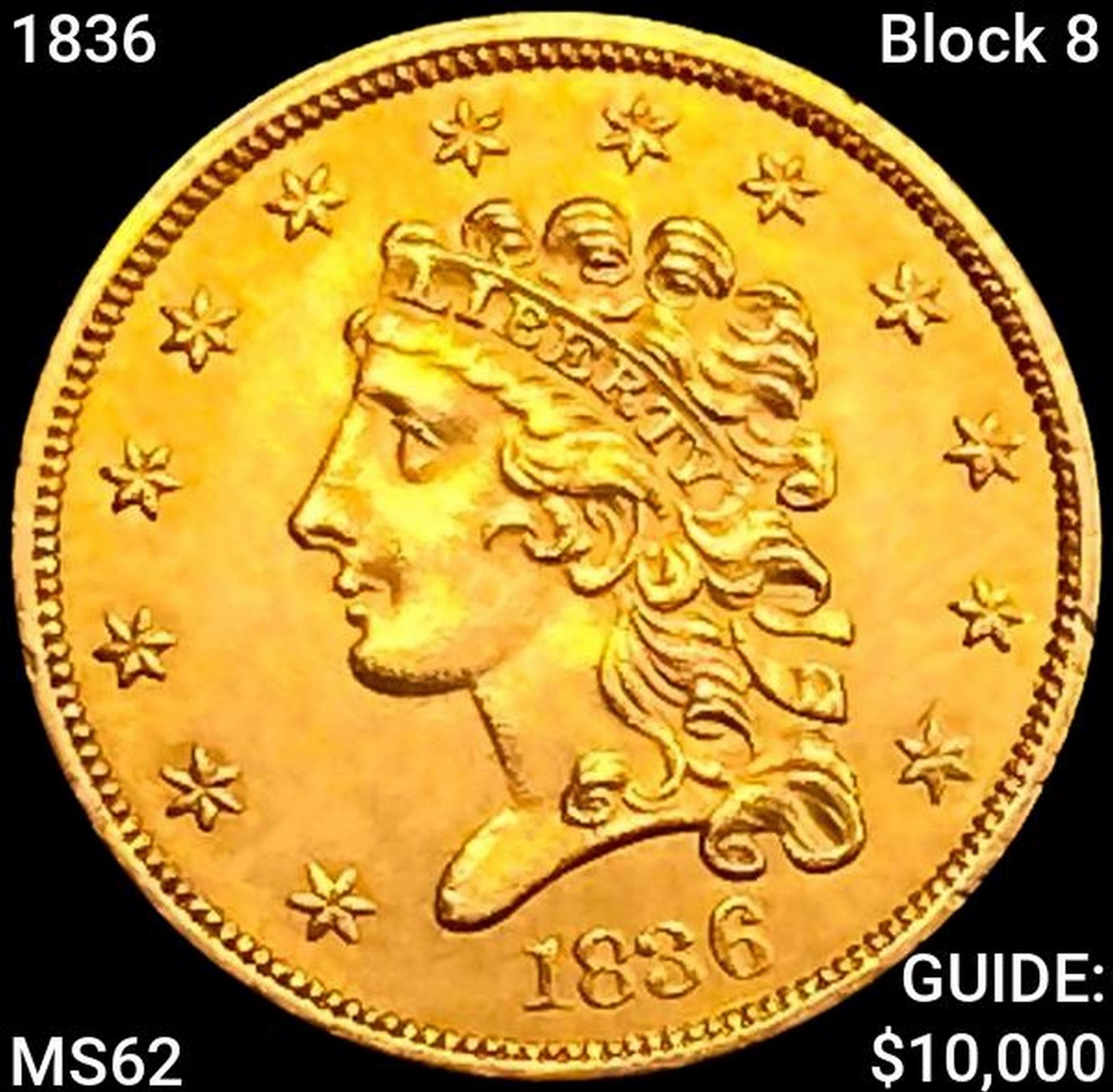1836 Block 8 $2.50 Gold Quarter Eagle UNCIRCULATED