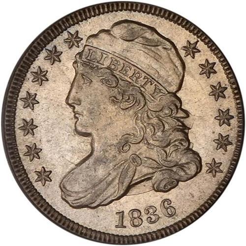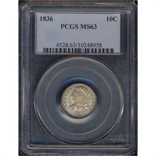 <b>1836 Capped Bust Dime. PCGS graded MS63.</b> Especially frost-encrusted surfaces give a grand display to the coin, one of a few remaining in such original condition. Should provide hours of enjoyment for the next owner <b>(PCGS # 4528)</b>