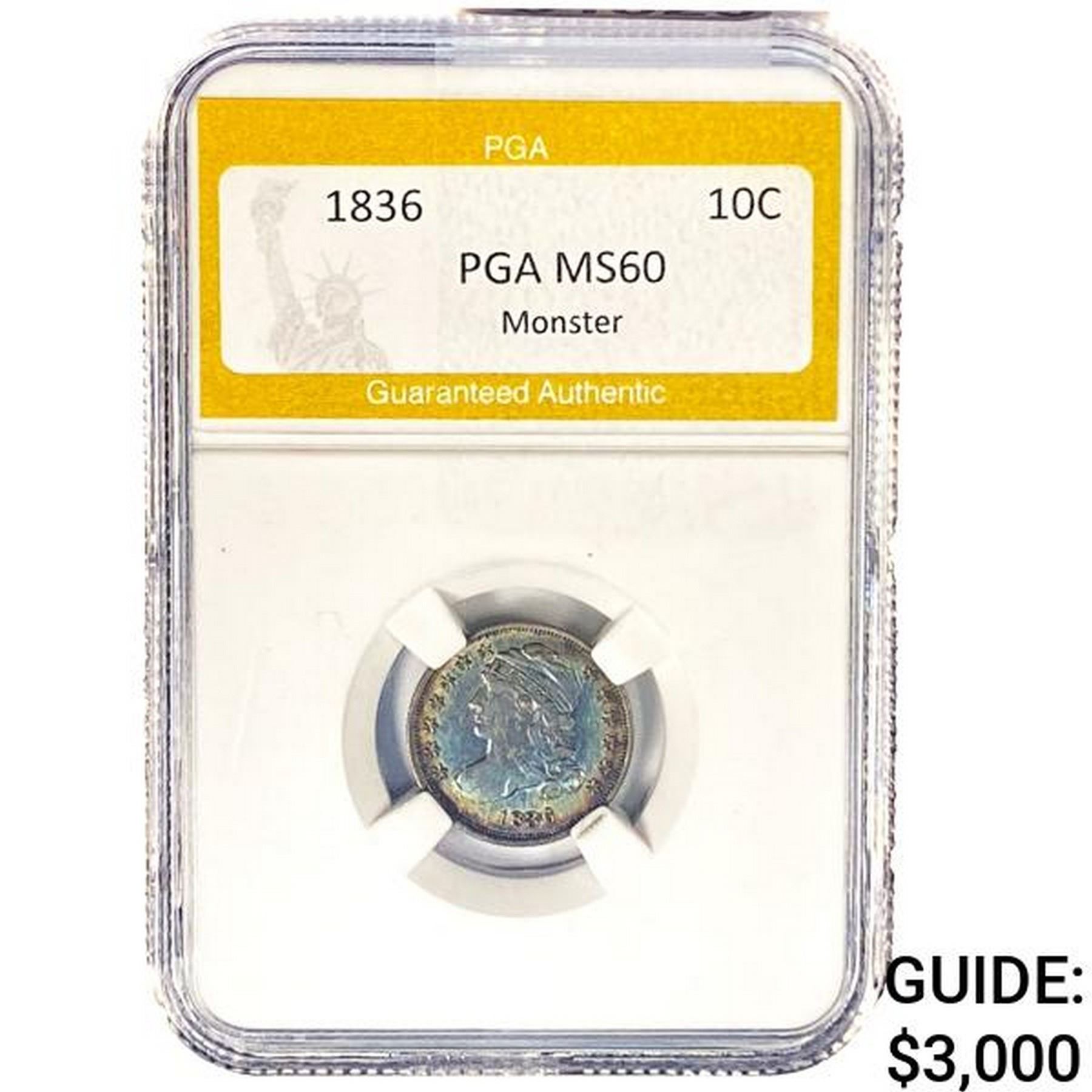 1836 Capped Bust Dime PGA MS60 MONSTER