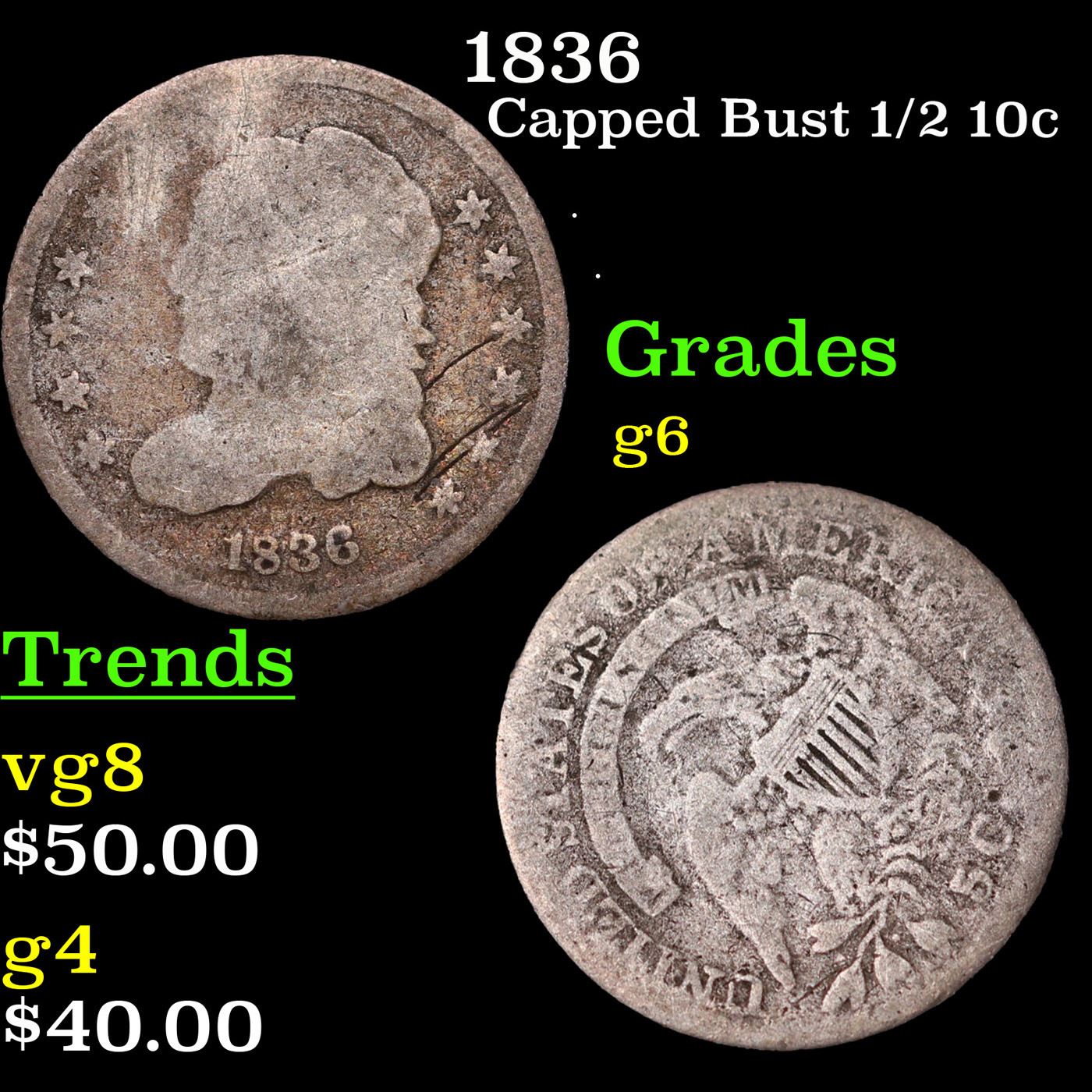 1836 Capped Bust Half Dime 1/2 10c Grades g+.