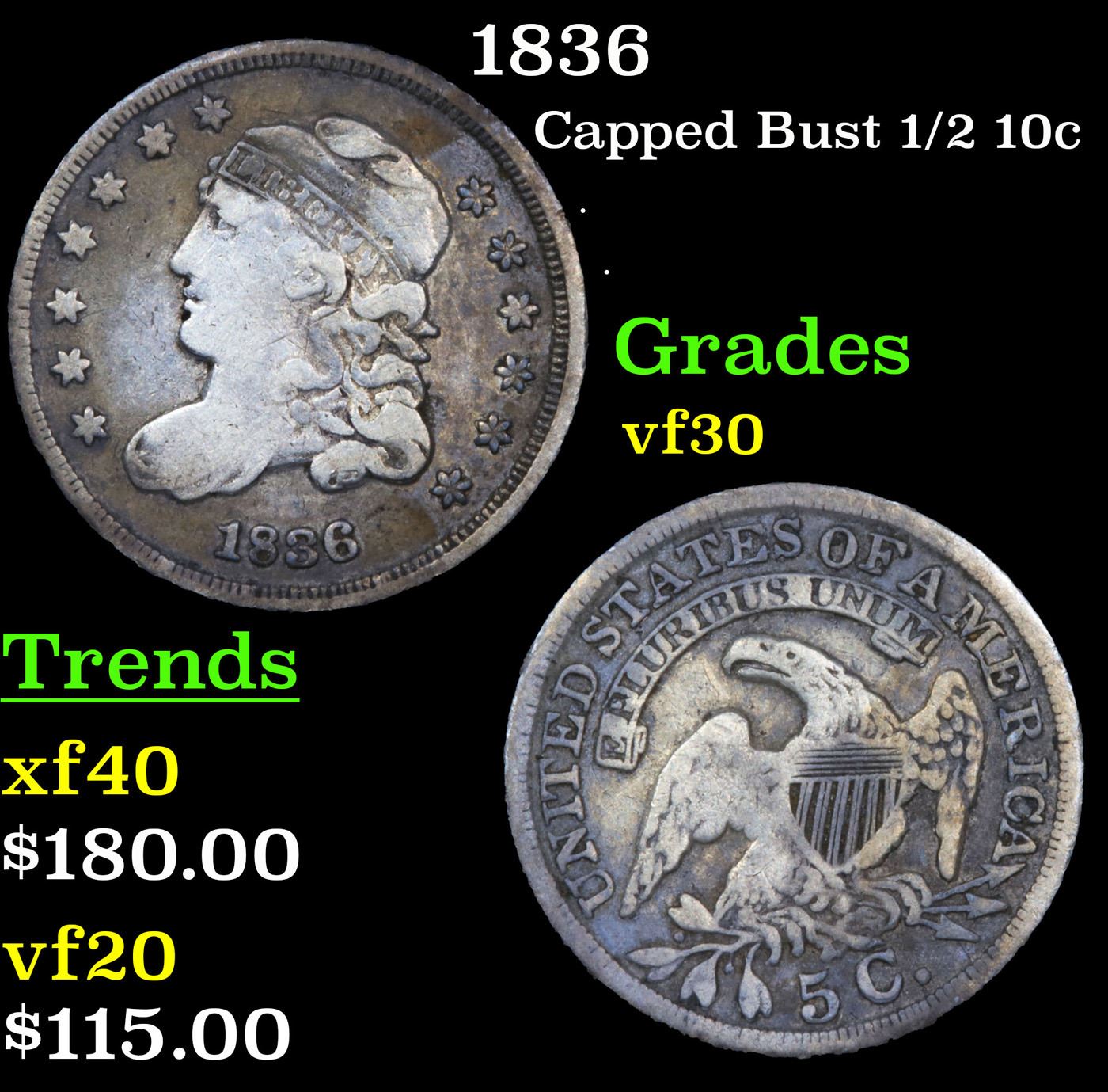 1836 Capped Bust Half Dime 1/2 10c Grades vf++.