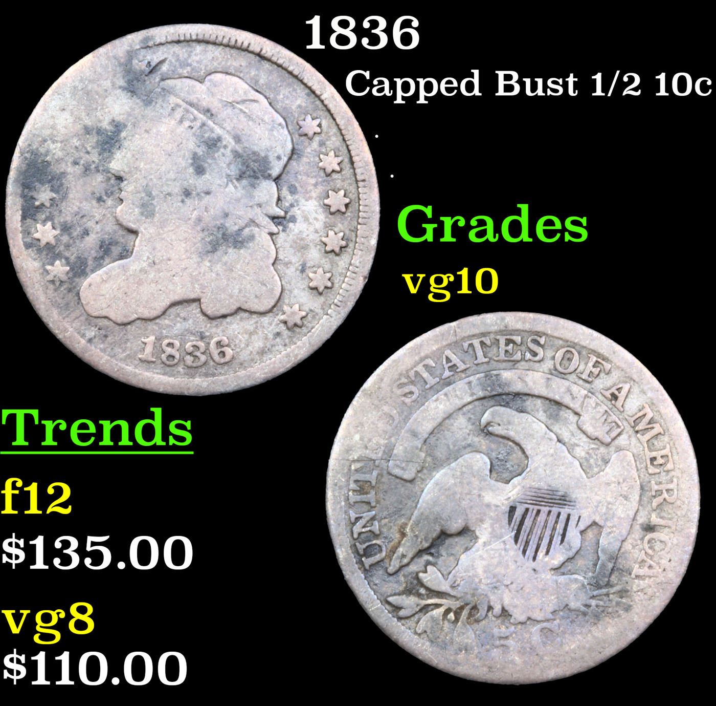 1836 Capped Bust Half Dime 1/2 10c Grades vg+.