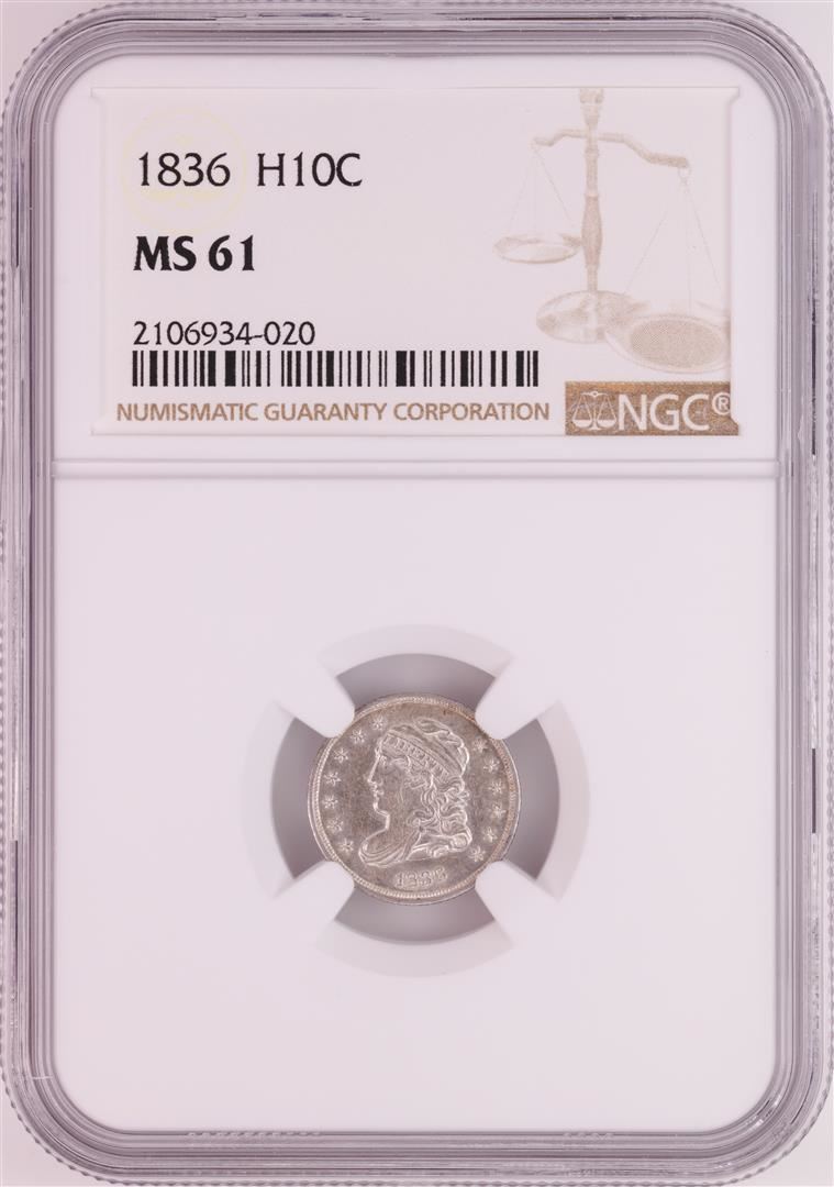 One 1836 Capped Bust Half Dime Coin NGC MS61. NGC Certified.