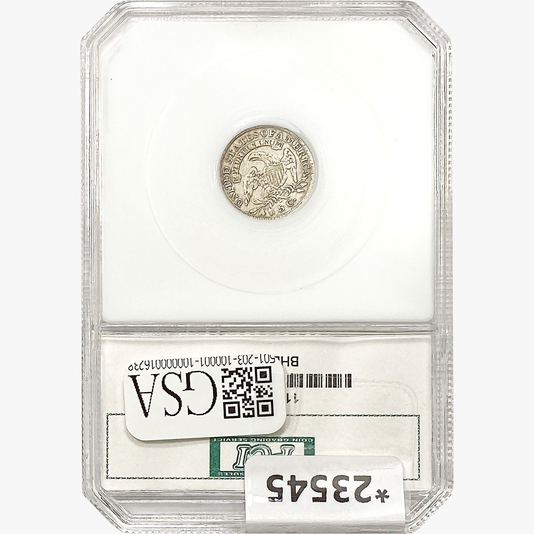 h. Since GSA cannot examine encapsulated coins or notes, they are sold “AS IS” without GSA’s grading opinion, and may not be returned for any reason. GSA shall not be liable for any patent or latent defect or controversy pertaining to or arising from any encapsulated Product. In any such instance, Bidder’s remedy, if any, shall be solely against the service certifying the Product.