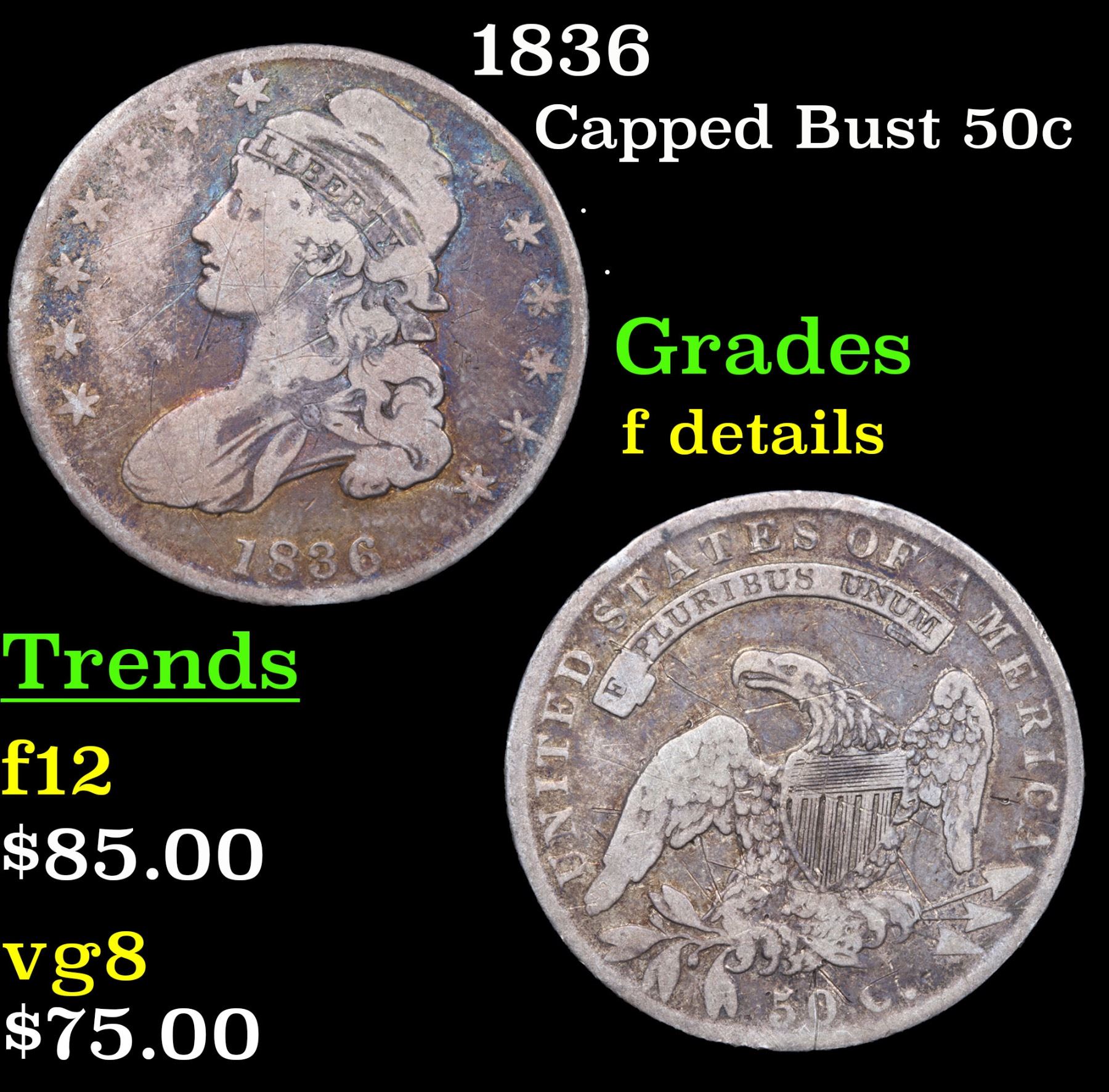 1836 Capped Bust Half Dollar 50c Grades f details.