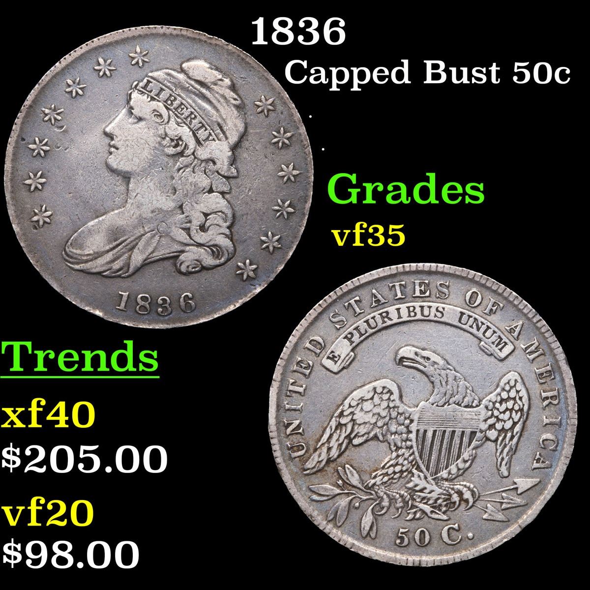 1836 . . Capped Bust Half Dollar 50c Grades vf++.