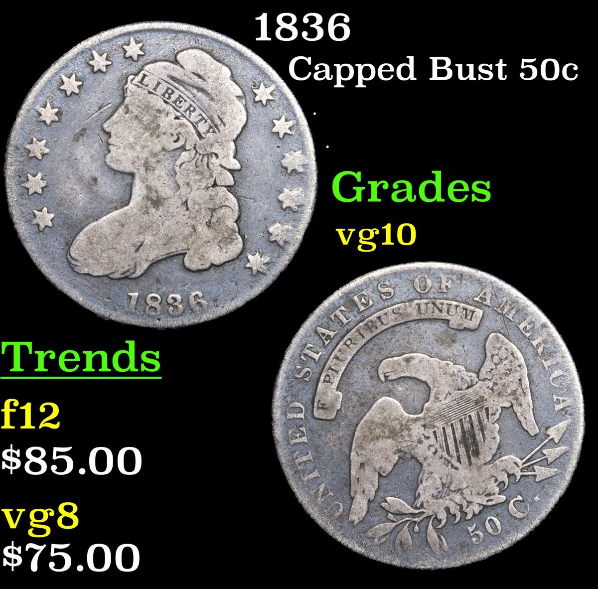 1836 Capped Bust Half Dollar 50c Grades vg+.