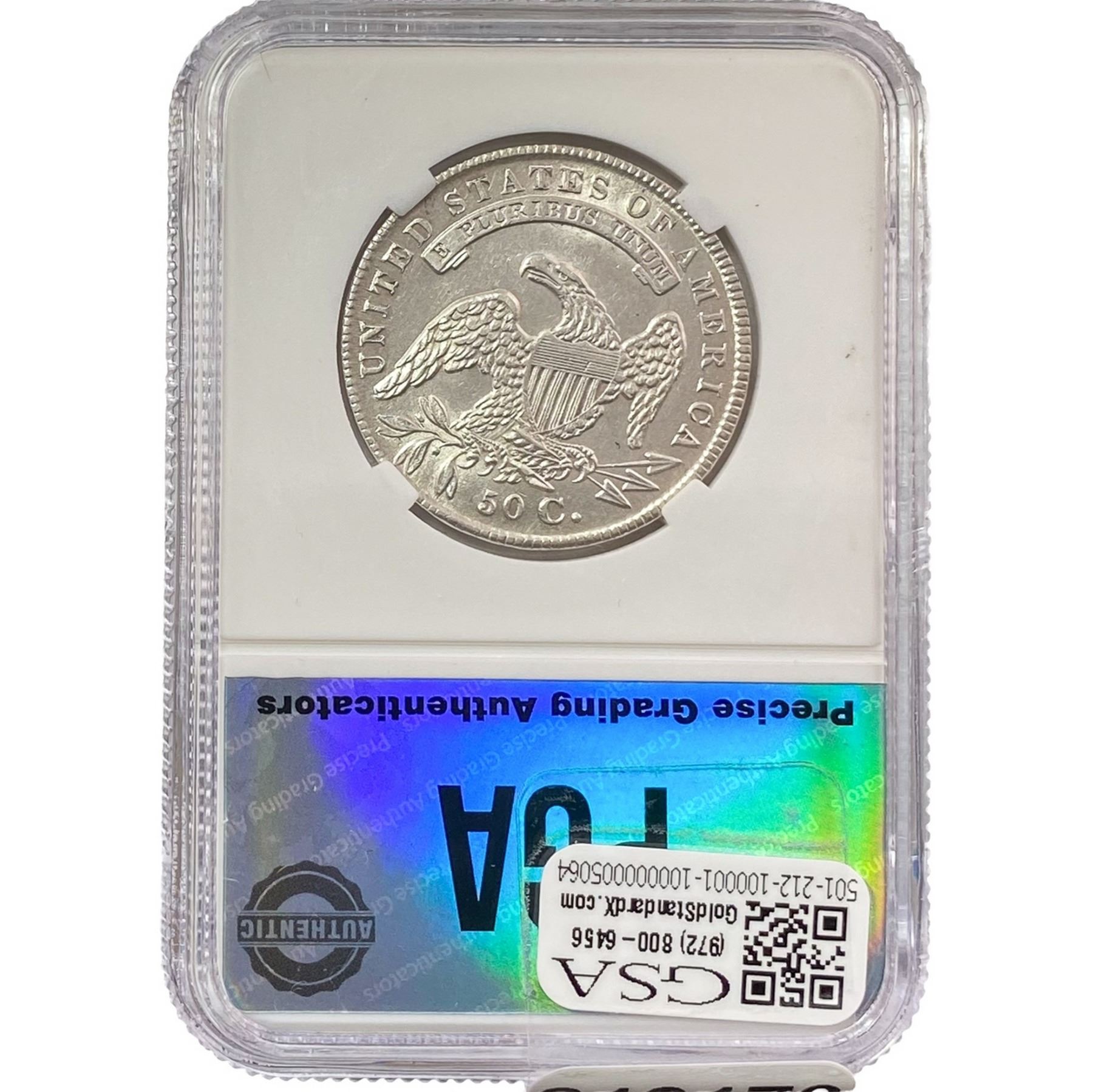 e. Coins sold referencing a third-party grading service are sold “AS IS” without any express or implied warranty, except for a guarantee by GSA that they are genuine. Removal or alteration of the holder, voids all of Bidder’s claims concerning that Product. Certain warranties may be available from the grading services and Bidders are referred to them for further details: Numismatic Guaranty Corporation (NGC), PO Box 4776, Sarasota, FL 34230, www.ngccoin.com/services/writtenguarantee.asp; Professional Coin Grading Services (PCGS), PO Box 9458, Newport Beach, CA 92658, www.pcgs.com/guarantee.html; ANACS, 6555 S. Kenton St., Ste. 303, Englewood, CO 80111; and Independent Coin Grading Co. (ICG), 7901 East Bellview, Ave., Suite 50, Englewood, CO 80111.