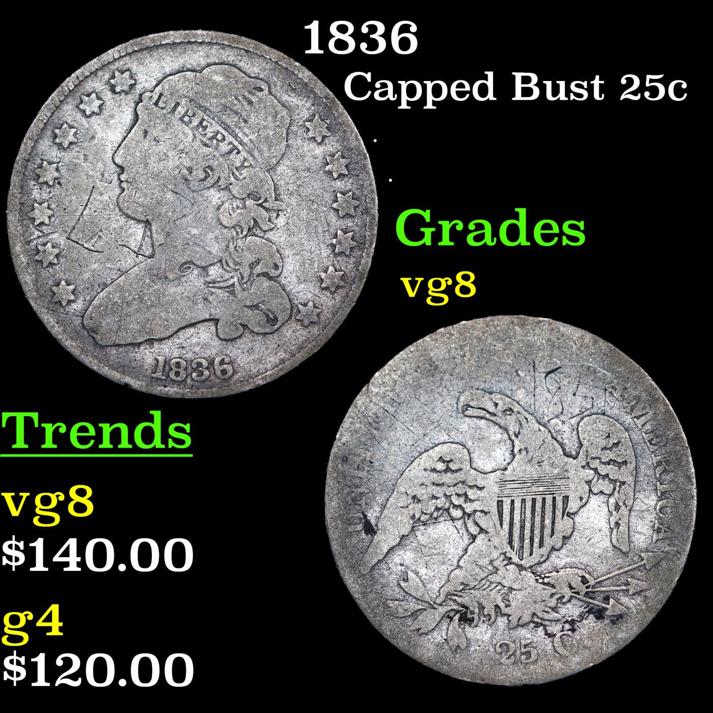 1836 Capped Bust Quarter 25c Grades vg, very good.