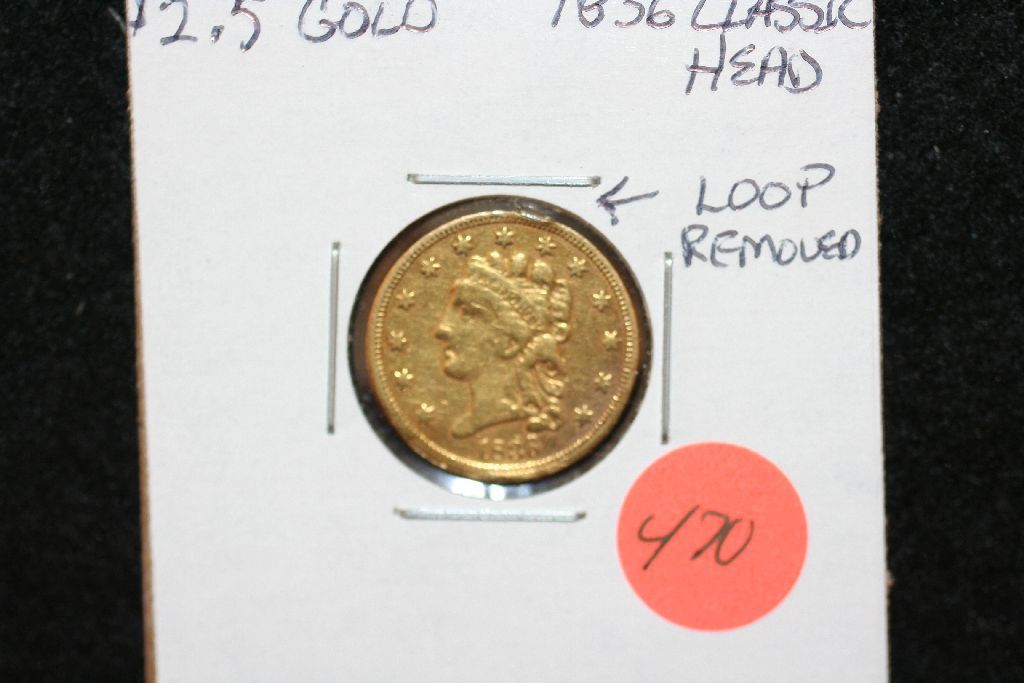 1836 Class Head $2 1/2 Gold Coin, Loop Removed