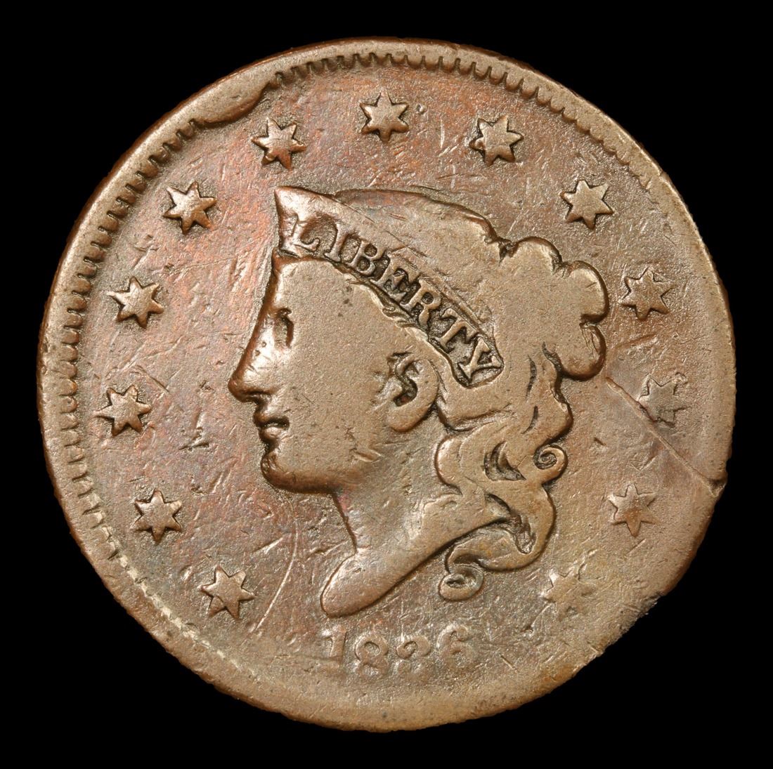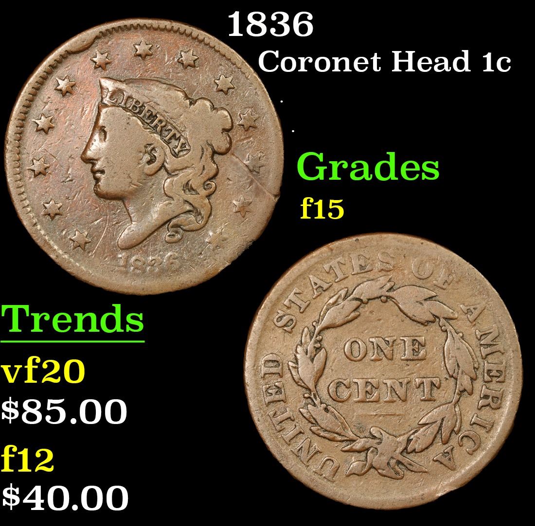 1836 . . Coronet Head Large Cent 1c Grades f+.