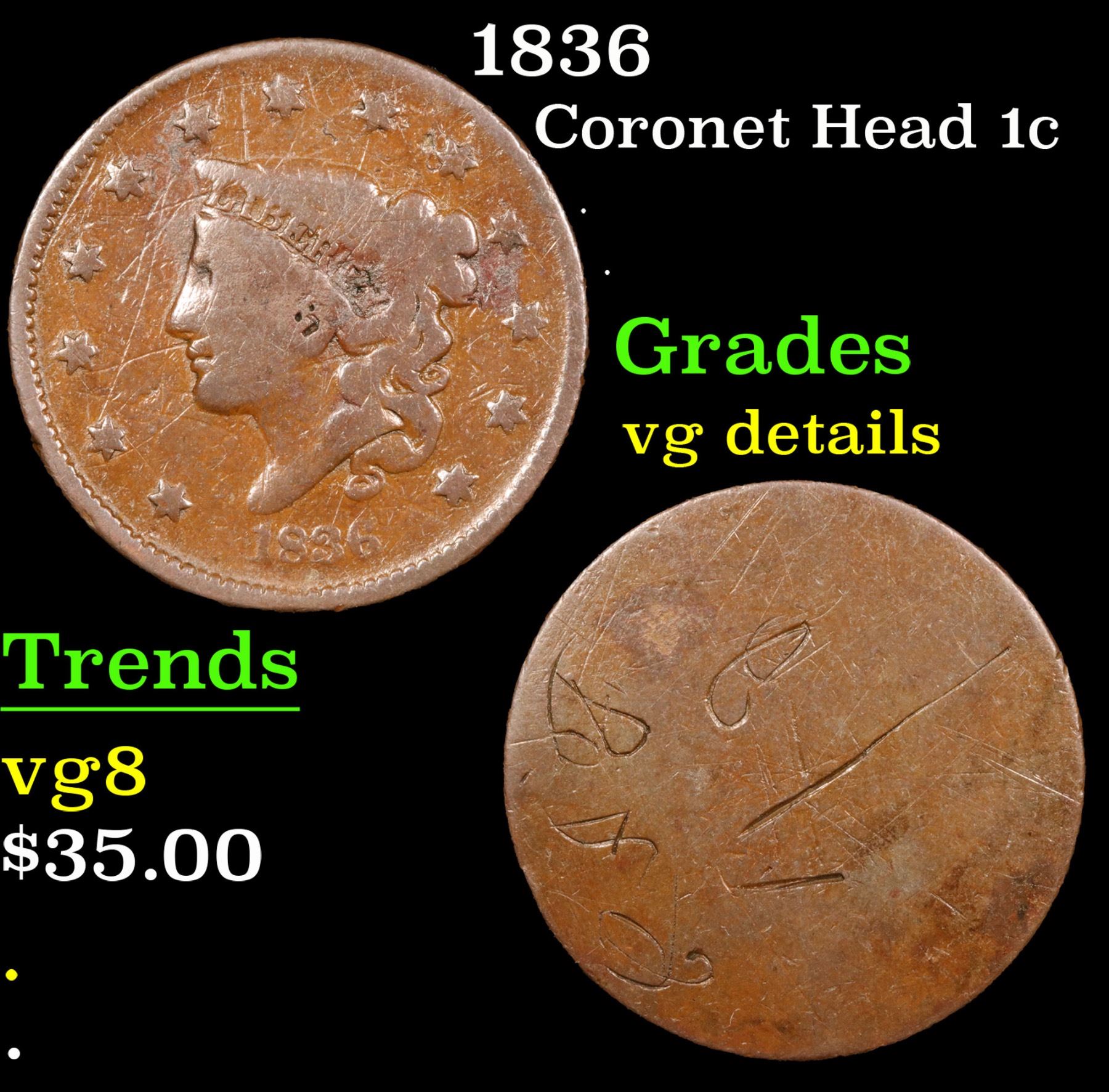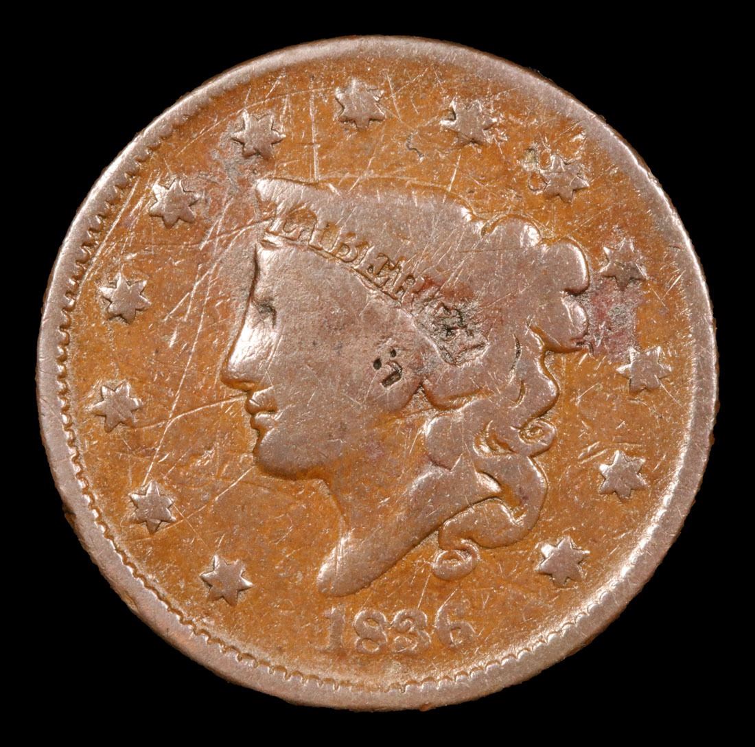 1836 . . Coronet Head Large Cent 1c Grades vg details.
