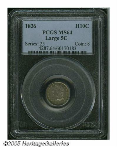 <B>1836<H10C> 3/Inverted 3 MS64 PCGS.</B></I> V-4, LM-3, R.1. A sharply struck near-Gem, beautifully toned in olive, gold, and lilac hues. High end for the grade, since no marks are readily observed.