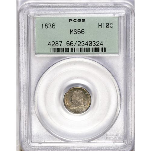 1836 H10C 3/Inverted 3 MS66 PCGS. V-4, LM-3, R.1. Dapp 1836