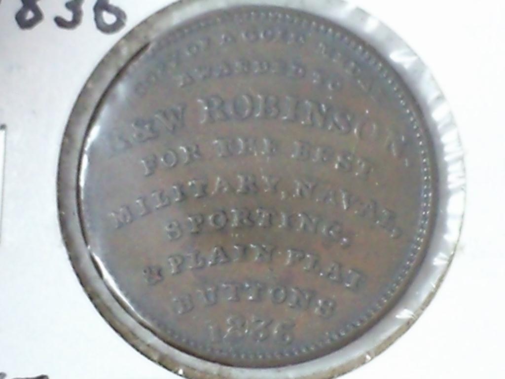 AWARDED TO K & W ROBINSON FOR THE BEST MILITARY, NAVAL, SPORTING AND PLAIN FLAT BUTTONS