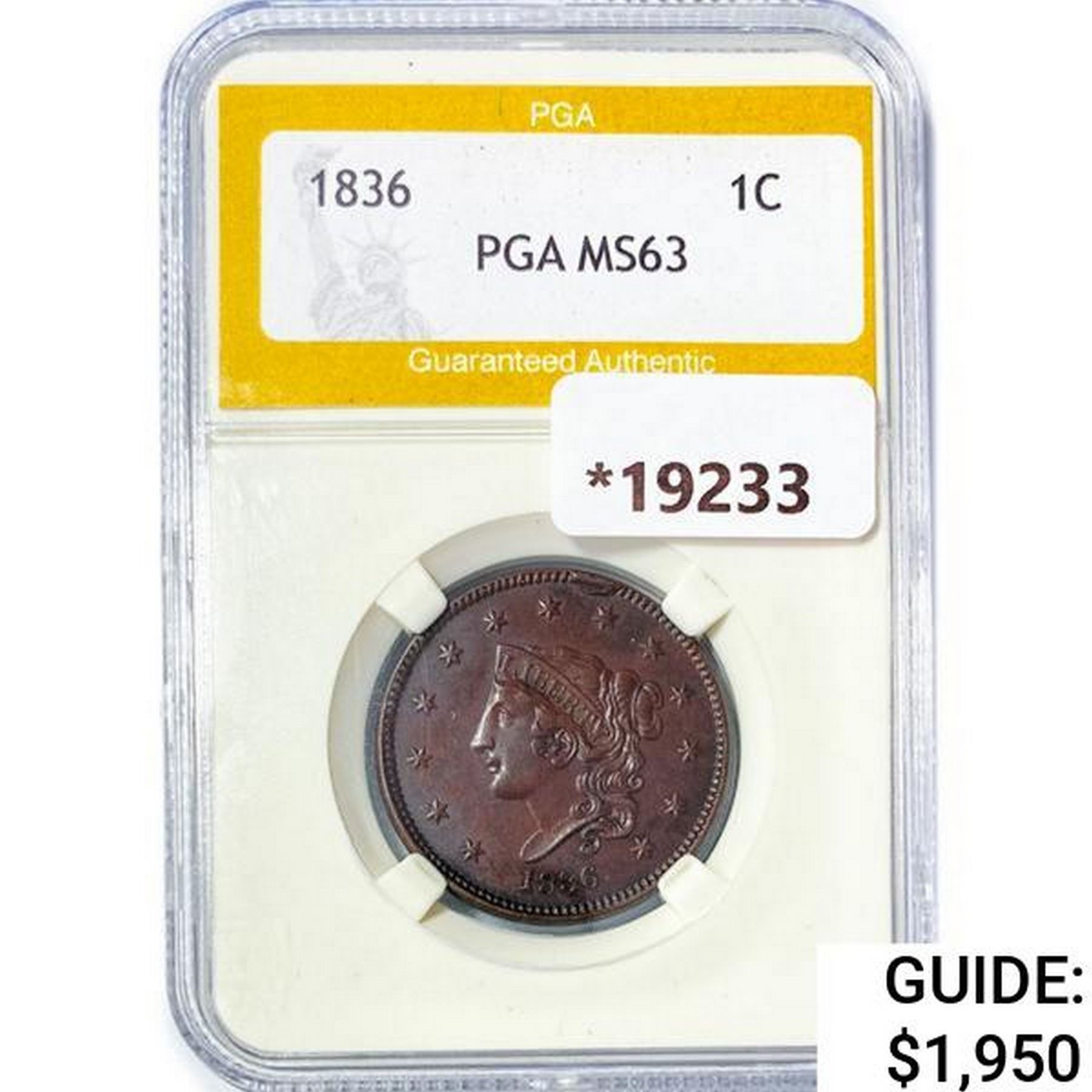 1836 Large Cent PGA MS63