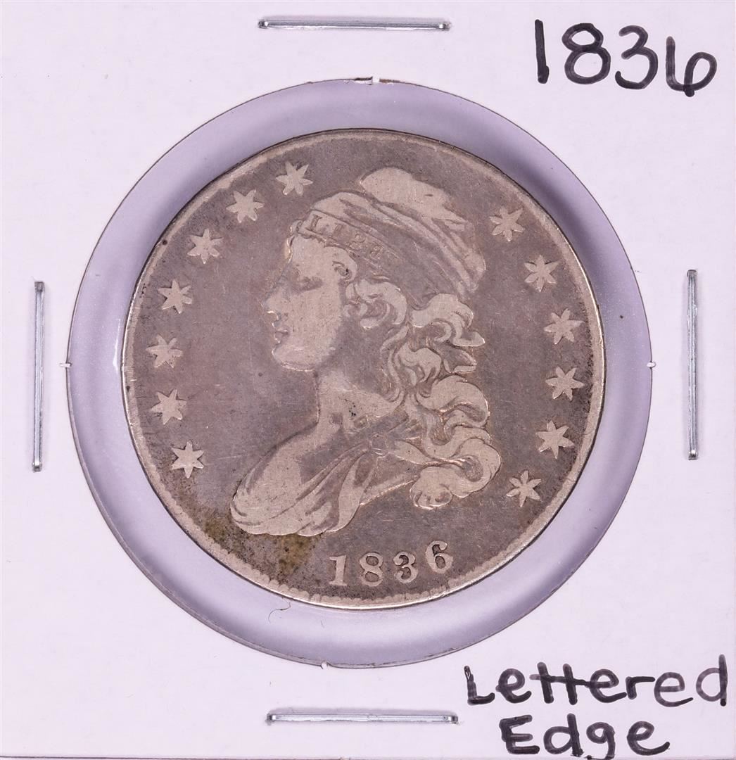 One 1836 Lettered Edge Capped Bust Half Dollar Coin.
