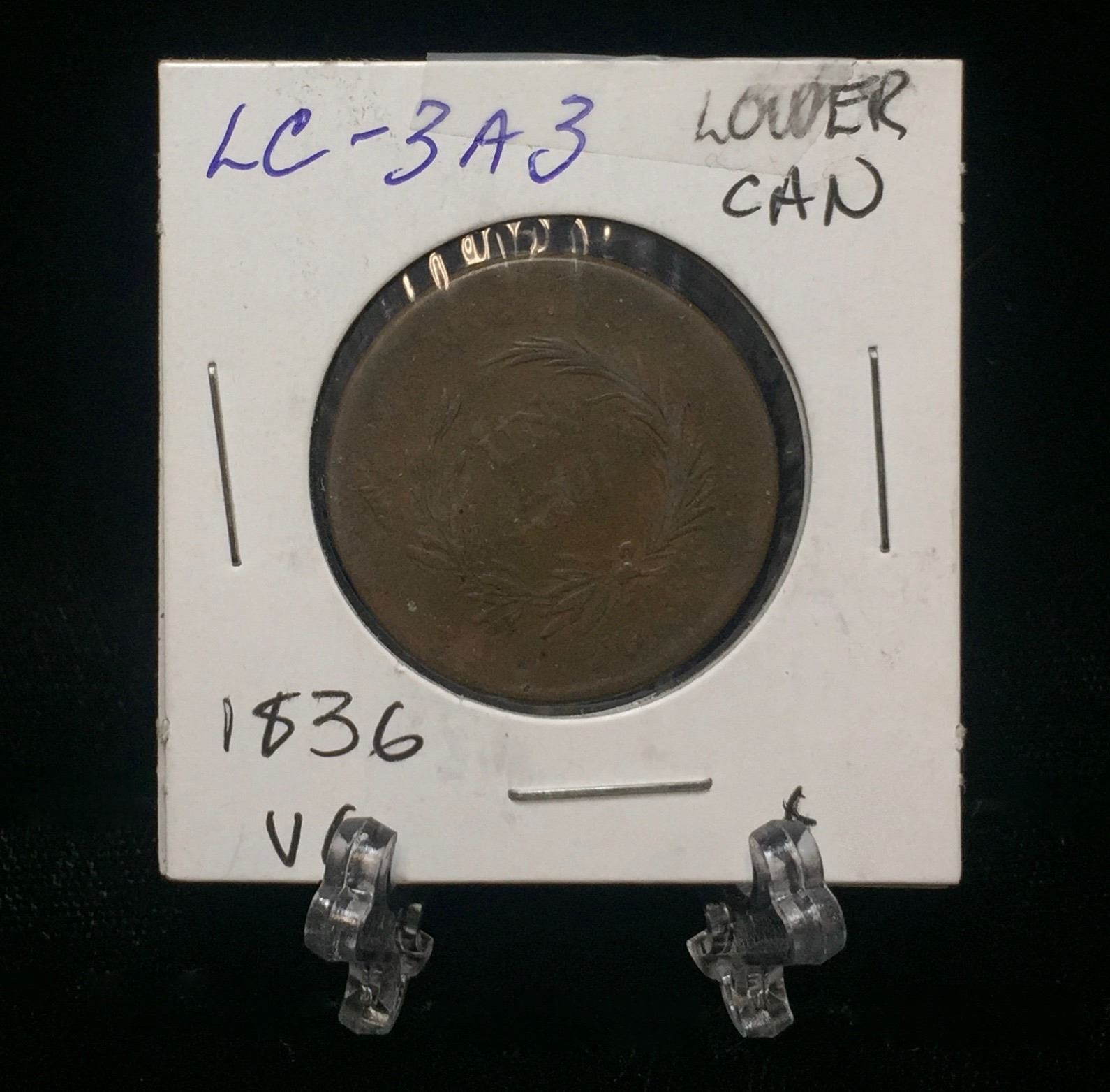 Lot 412; 1836 Lower Canada Montreal Un Sou Token LC-3A3 Very Good