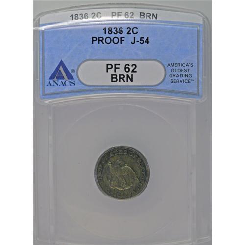 1836 P2C Two Cents, Judd-54, Pollock-57, Low R.6, PR62