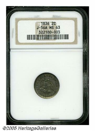 1836 P2C Two Cents, Judd-56A, Pollock-58, R.8, MS