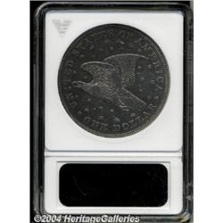 <B>1836<PS$1> Name on Base, Judd-60 Original, Pollock-65, R.1--Cleaned--ANACS. XF Details, Net PR30.</B></I> Silver. Plain Edge. Die Alignment I, issue of 1836. The present variety has C. GOBRECHT F. inscribed on the base of the rock. Based on the coin's die alignment, this piece represents one of the 1,000 Gobrecht dollars that were struck in December of 1836, and are routinely called "first originals." The Gobrecht dollars made in 1836 were struck on heavy weight (416.5 grain) planchets, the standard in effect since 1794. The present coin shows the cumulative effects of wear typical of circulation, illustrating that many Gobrecht dollars actually circulated within the channels of commerce; and therefore, represent "business strikes" even though they were originally struck as proofs. The Gobrecht dollars of 1836 and 1837 were also made with a plain edge (a somewhat unique situation for U.S. coins), indicating that a reeded collar for these coins was not ready in 1836. In fact, the Mint was changing from lettered edges to reeded edges at about this time. Unlike the reeded edge half dollars made in November 1836, all Gobrecht dollars made between 1836 and 1839 were produced on a screw press. The surfaces of the present coin are untoned and are non-reflective due to cleanings that must have occurred over the last 167 years. It was a normal practice for many decades for people to occasionally clean or polish their coins. In fact, the Gobrecht dollars that reside in the Smithsonian Collection, which were acquired from the U.S. Mint Collection, have also been cleaned several times by Mint personnel. Even though all Gobrecht dollars were produced with a proof finish and are listed in the Judd and/or Pollock pattern books, it is now generally accepted that the 1,000 coins minted in 1836, the 600 made in 1837, and the 300 struck in 1839 are standard issue coins made for circulation; and therefore, are not patterns. Nevertheless, the Judd and Pollock catalog numbers for these coins are routinely supplied for technical and historical reference.<BR> The present coin represents a well circulated Gobrecht dollar that should be compatible with a introductory level or general type collection.<BR><I>From The Paulsboro Collection.</B></I> <BR><BR><B>Important notice:</B> Heritage usually auctions material at the rate of 200-250 lots per hour. On some occasions eBay Live bid software or the Internet may not be able to keep up with the pace of the auction. We recommend placing a realistic absentee bid now as insurance to avoid disappointment. Occasionally the auctioneer may eliminate or reject an eBay Live bid, and the auctioneer may also reopen a lot after the close of the eBay live bidding (usually because we missed an audience bid), and may reject your bid even if it shows you as the winning bidder. By bidding via eBay Live, you agree that Heritage may award the lot to another bidder at its sole discretion under the circumstances described above or any other reasonable circumstances. Since eBay bids are not shown to us until we open the lot on the floor, we treat those bids just like floor bids. In most cases the floor responds before the eBay bid is presented to us, due to Internet lag time, so for consistency we have made it a policy that floor bids are always considered first over tie eBay live bids. Also please note that all Heritage lots purchased through eBay Live carry a 20% Buyer's Premium. Please make sure you read the Terms and Conditions before you bid.