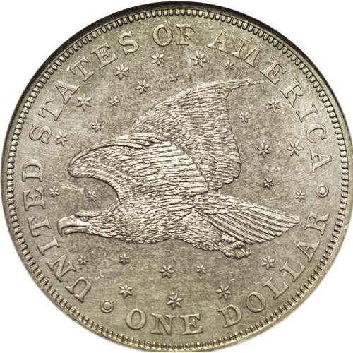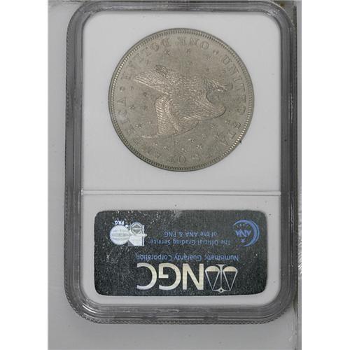 <B>1836<PS$1> Name on Base, Judd-60 Original, Pollock-65, R.1, PR61 NGC.</B></I> Plain Edge. Silver. Intermediate die alignment between II and IV with the head of Liberty opposite the O in OF. On this example, the eagle flies slightly upward after a medal turn. This particular alignment is much more difficult to locate than either the Die Alignment II or IV coins. It is estimated that about 10% of the March 1837 mintage of 600 coins resulted in intermediate alignment coins. The die scratch above the eagle's wing is faint, but when the coin is angled in the light it can be seen.<BR> All of the Gobrecht dollars made in 1837 are dated 1836. Technically these coins should be called "restrikes;" however, because they were an official product of the U.S. Mint, they are commonly referred to as "Second Originals;" with the designation of "First Originals" reserved for the dollars struck in December 1836. Furthermore, since all of these coins were placed into circulation, these pieces represent a circulation issue and therefore are not patterns. The Gobrecht dollars of 1837 began in Die Alignment II but the reverse die was apparently not secure. Consequently, as the die slowly rotated, coins were struck in orientations from Die Alignment II to IV, which is to say with the eagle began flying "onward and upward" (i.e. Die Alignment II), as with the December 1836 coins, to the eagle flying level (i.e., Die Alignment IV). Unlike many Gobrecht dollars, this piece is essentially untoned. The hazy, gray-brilliant surfaces show numerous small abrasions, but the only ones that are worthy of mention are a cluster in the field above the rock and to the left of Liberty's arm. Fully struck with complete hair and foot definition. Repunching of the 8 and 3 in the date is clearly evident under magnification.