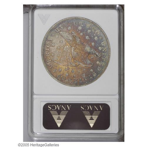 <B>1836<PS$1> Name on Base, Judd-60 Restrike, Pollock-65, R.5--Cleaned, Retoned--ANACS. AU Details.</B></I> Plain Edge. Silver. Die Alignment II, with the eagle flying upward after a medallic turn. These coins range from Die Alignments II through IV. The dies accidentally rotated during production with the initial position being Die Alignment II (as with this coin), and Die Alignment IV was the final configuration with the eagle flying level. Of the 600 coins produced with the 1836 date (actually produced in 1837) and with a medallic rotation, two-thirds are believed known in Die Alignment IV (eagle flying level). While this is obviously a retoned piece, we have to admit it is attractive coloration. Nicely reflective, but not deeply so, with obvious hairlining that subdues the mirrors in the fields. A couple of milling marks are located over the left (facing) shoulder of Liberty. Mislabeled on the insert as an original.