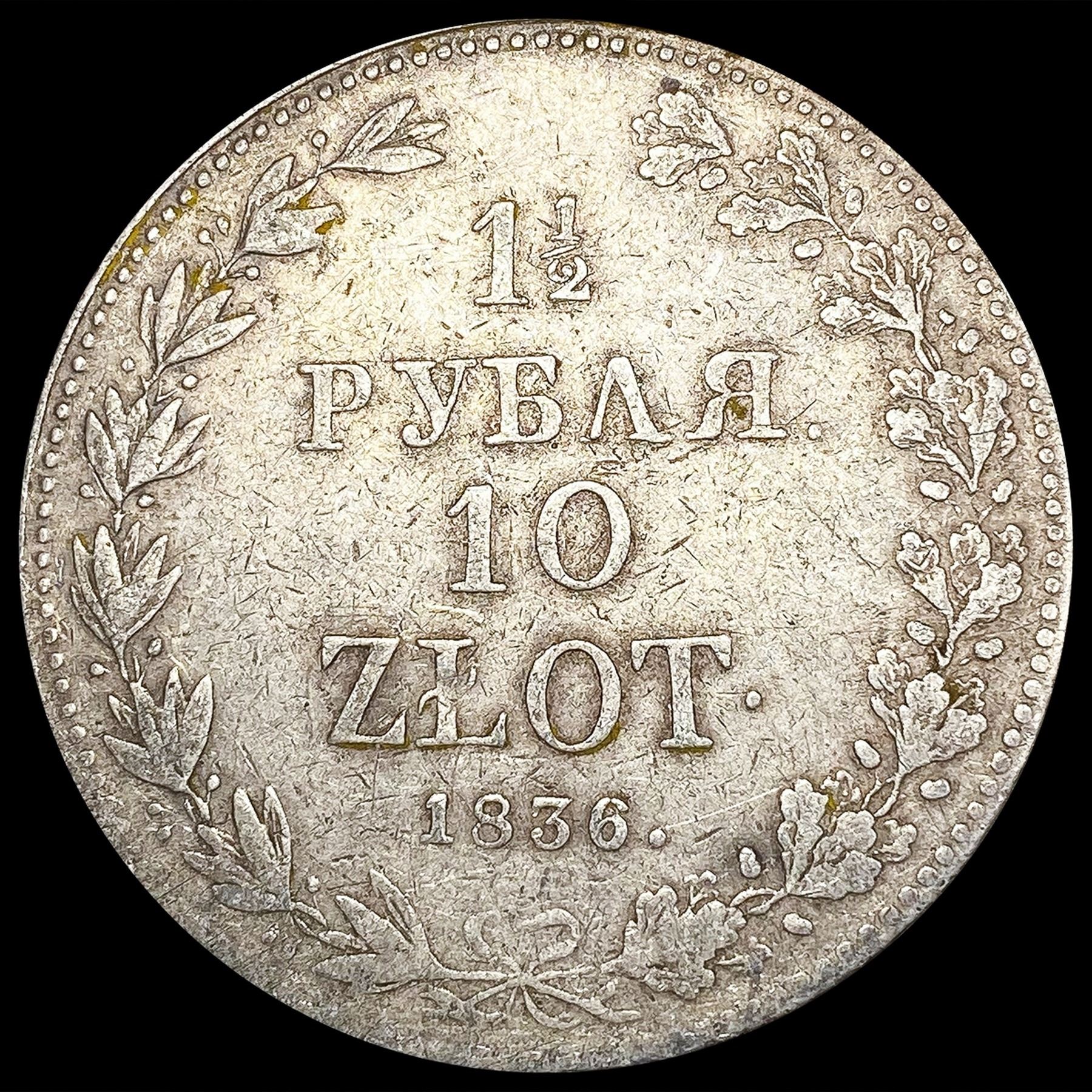 1836 Poland Silver 1 1/2 Rubles LIGHTLY CIRCULATED