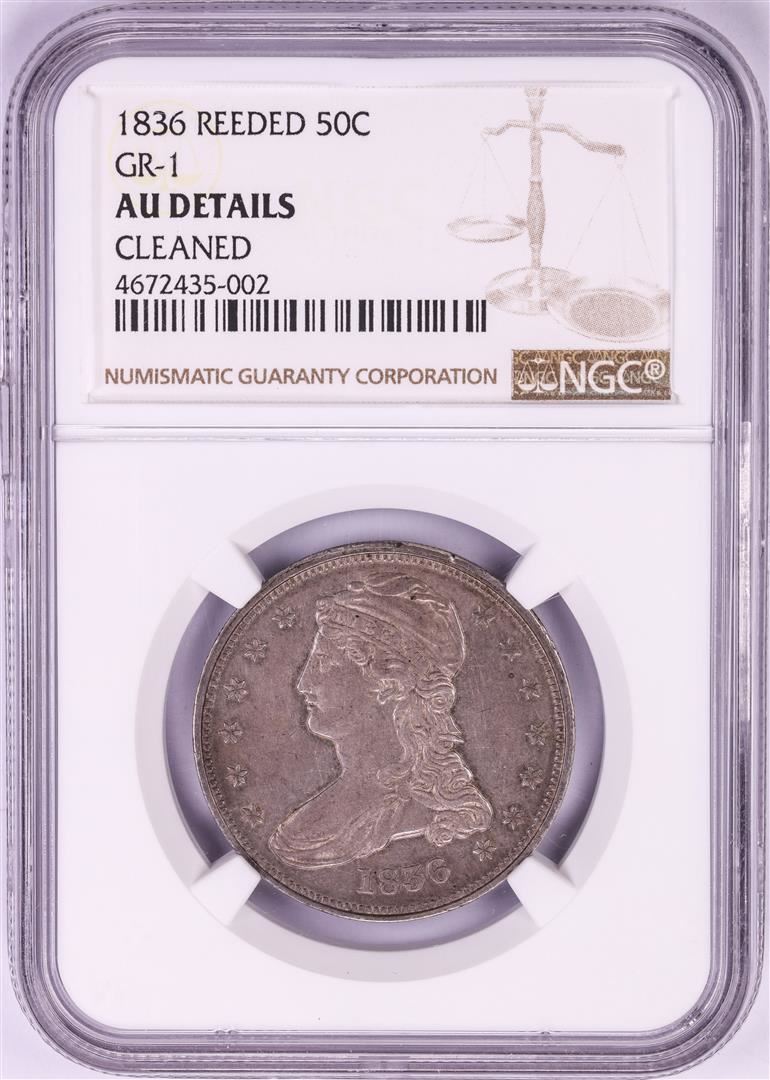 One 1836 Reeded Edge Capped Bust Half Dollar Coin NGC AU Details GR-1. NGC Certified.
