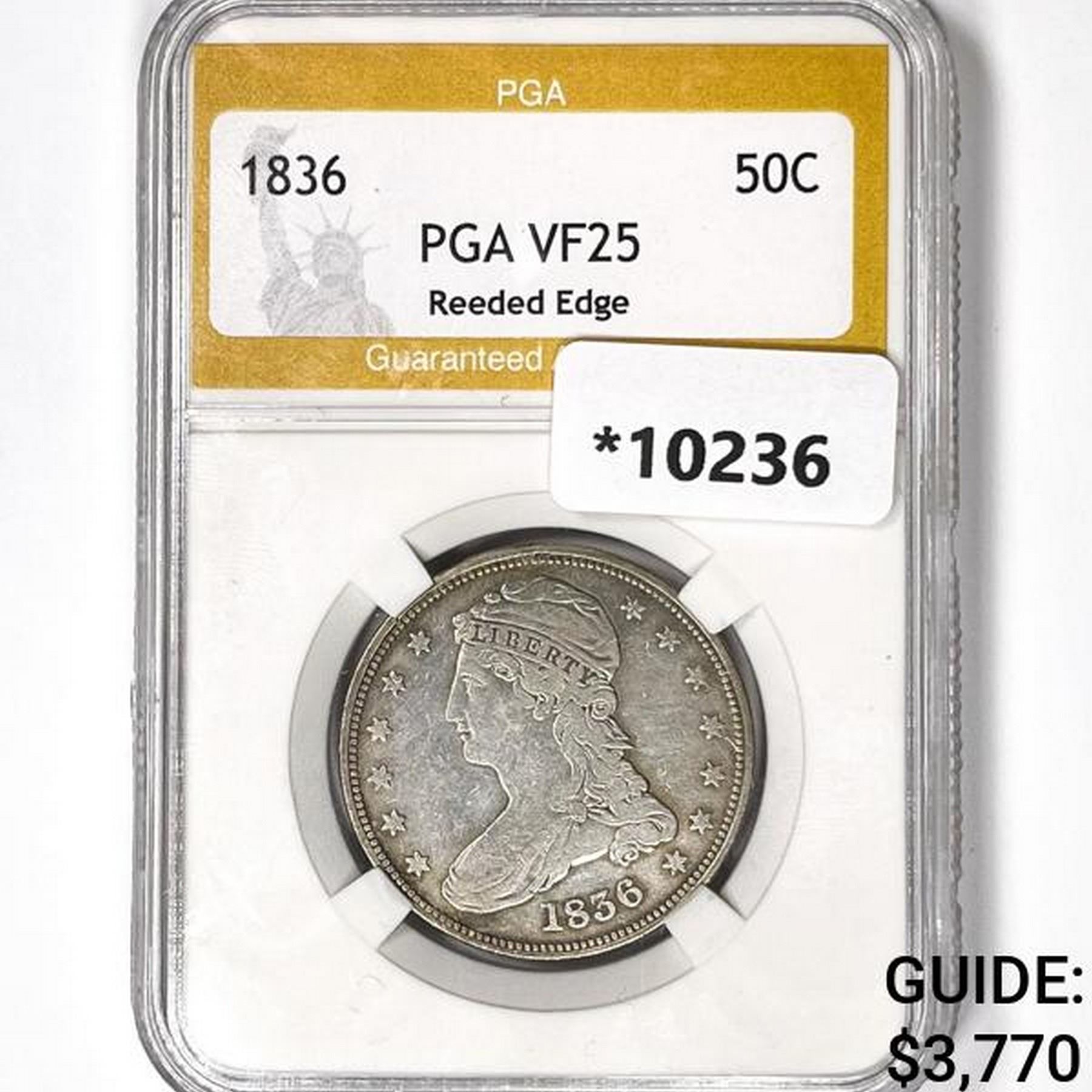 1836 Reeded Edge Capped Bust Half Dollar PGA VF25
