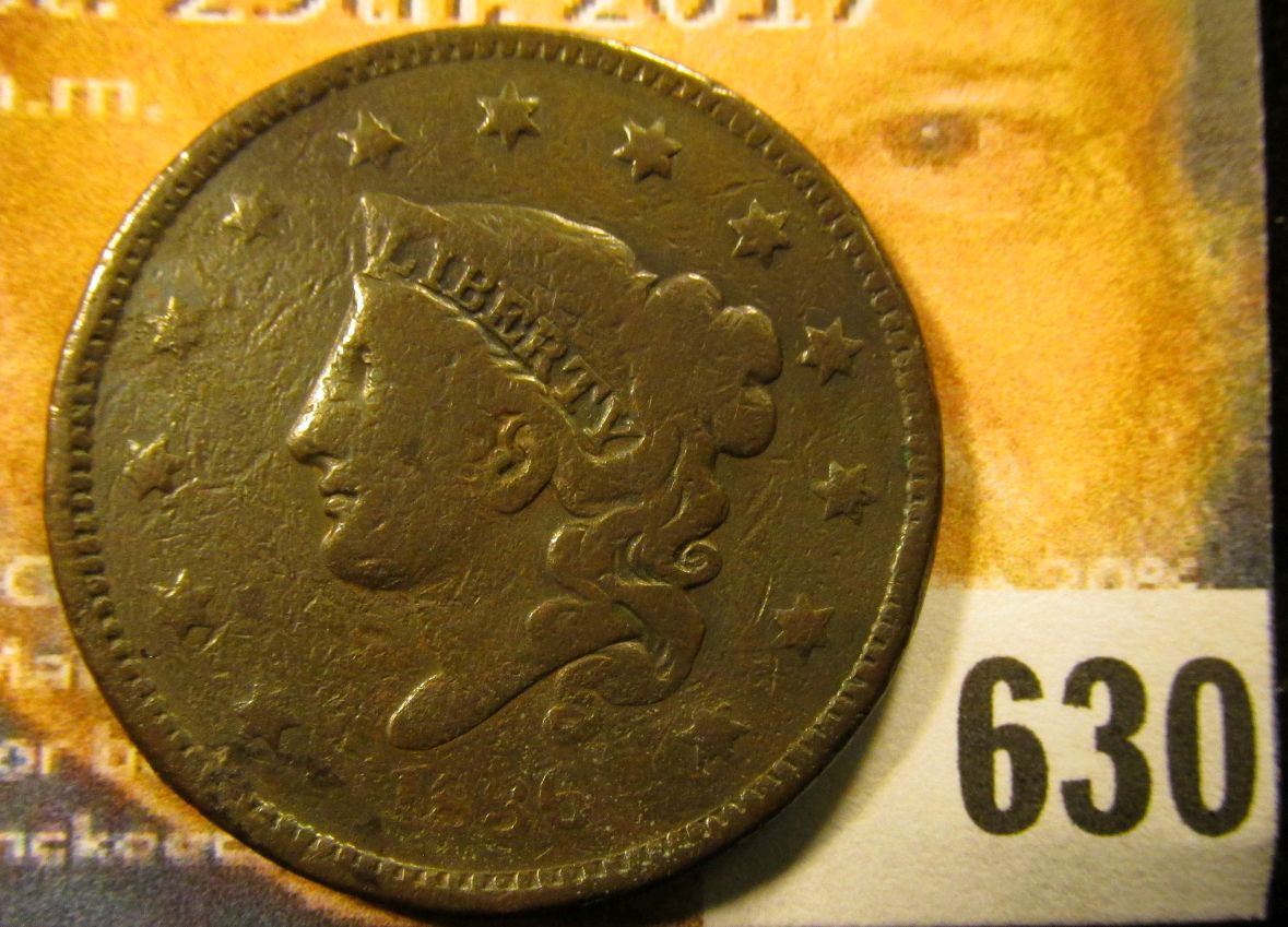 1836 U.S. Large Cent, Fine, Weak date.
