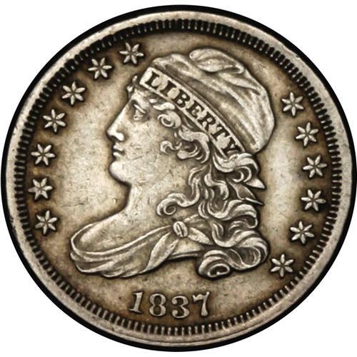 <B>1837<10C> JR-1, R.4. Reiver state a.--Improperly Cleaned--NCS. AU Details.</B></I> Lightly cleaned in the past with the usual resulting hairlines and slightly dull surfaces. Nevertheless, traces of luster remain in the protected areas and the coin is toned a light gray with some peripheral golden highlights. An average strike with minor central weakness for the variety. All four minor reverse die cracks are present, and the dentils weak over the legend on the reverse.<BR><I>Ex: Paul Padget (January 1986).</B></I> Envelope Included.