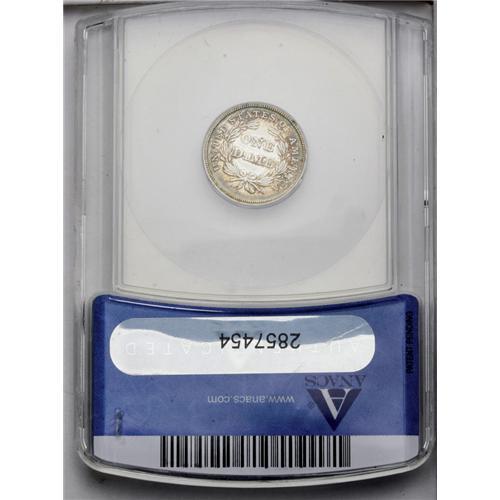 1837 10C Large Date AU55 ANACS. Primarily untoned cent 1837[10C] Large Date AU55 ANACS.