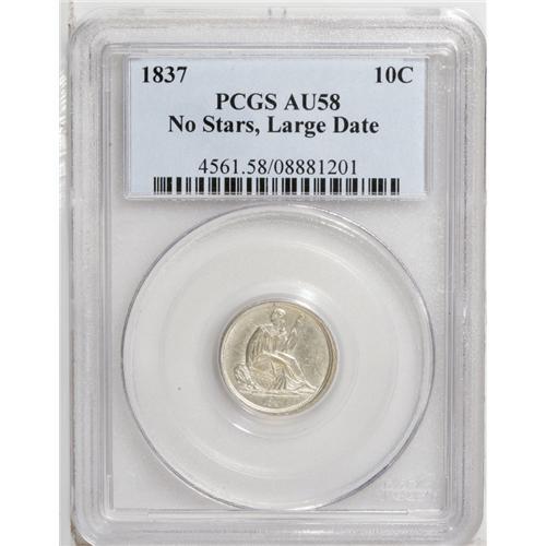1837 10C No Stars, Large Date AU58 PCGS. Nicely struck