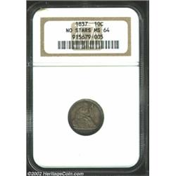 1837 10C No Stars MS64 NGC. Small Date. High grade type collectors would be wise to enter strong bid