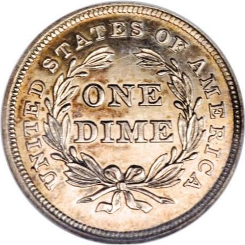 <B>1837 10C No Stars PR64 NGC.</B></I> Among early proof Seated coins issued prior to 1858, the 1837 No Stars dime is actually more available than most others. Available, of course, but not plentiful. It is probably true that only about 20 proof examples of this issue are known today. This specimen is a wonderful near-Gem is boldly detailed with deeply mirrored fields around sharp design motifs. The contrast between the fields and devices falls just short of a Cameo designation, yet the simplicity of the design allows the devices to stand boldly against the background. A trace of toning on each side adds to the aesthetic appeal of this piece. Census: 11 in 64, 4 finer (1/08).<BR><BR><b>Shipping:</b> Coins & Currency (<a target="_blank" href="http://www.heritageauctions.com/common/shipping.php">view shipping information</a>)