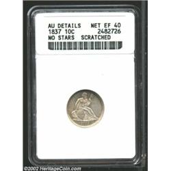 1837 10C No Stars--Scratched--ANACS. AU Details, Net XF40. This coin presents well with dominant dov