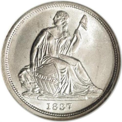 1837 10C No Stars, Small Date MS65 NGC. CAC