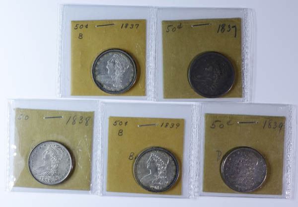 1837-1839 Bust Half Dollars (reeded edge), 5 pieces