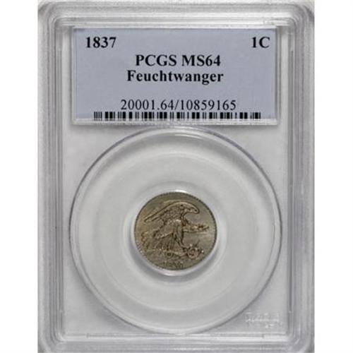 <B>1837 1C Feuchtwanger Cent MS64 PCGS.</B></I> Low-120, HT-268, Breen 6-I, R.1. Apricot and rose patina graces the unworn surfaces of this well-defined Feuchtwanger cent. Pleasingly lustrous with few marks for the grade, an attractive example of this well-known German silver token. <BR><BR><b>Shipping:</b> Coins & Currency (<a target="_blank" href="http://www.heritageauctions.com/common/shipping.php">view shipping information</a>)